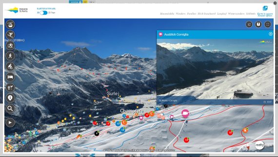 “The resolution is so good that even individual ski tracks are visible,” says Claudia Roeben, who is responsible for sales within Germany, Austria, and Switzerland, and a speaker at “Your Winter. Your Sport.” “It shows piste status, weather reports, and web cams, as well as eateries and hotels shown and filtered based on availability.”